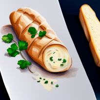 3)  버터 1T, 다진 마늘 1t, 다진 파슬리 1t를 섞어서 바게트에 바른다.