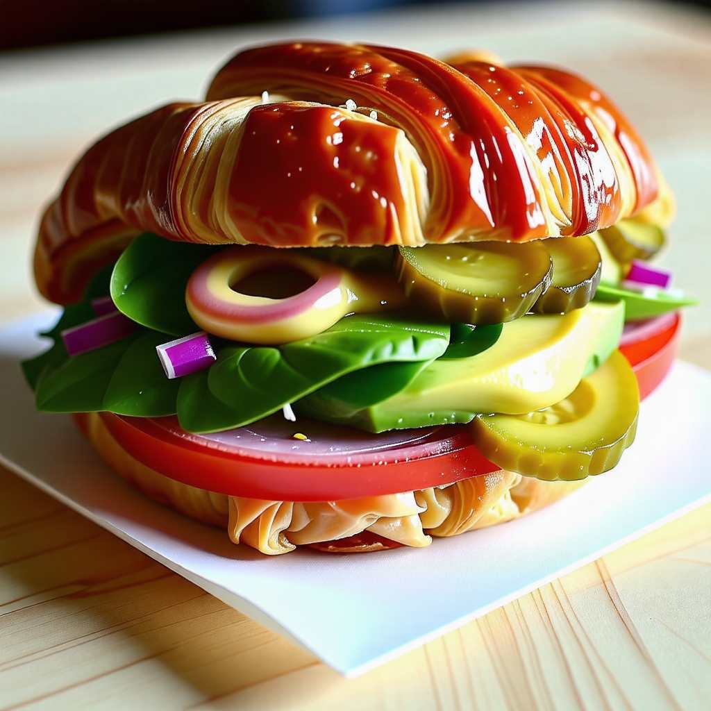 부드러운 크루아상 빵에 신선한 야채와 아보카도, 고소한 햄이 어우러진 이 샌드위치는 든든하면서도 꾸덕한 맛을 자랑합니다. 가벼운 한 끼 식사나 피크닉 도시락으로 제격이니 꼭 한번 만들어보세요!