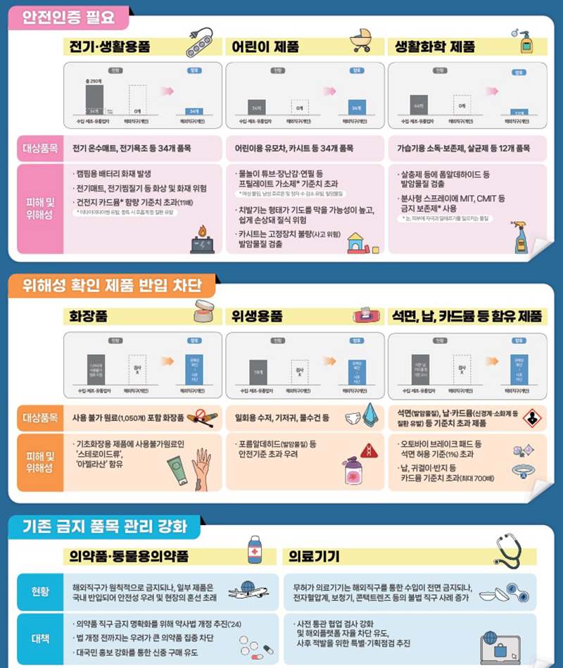 1. 국민 안전·건강 위해성이 큰 해외직구 제품은 안전 인증이 없는 경우 해외직구 금지